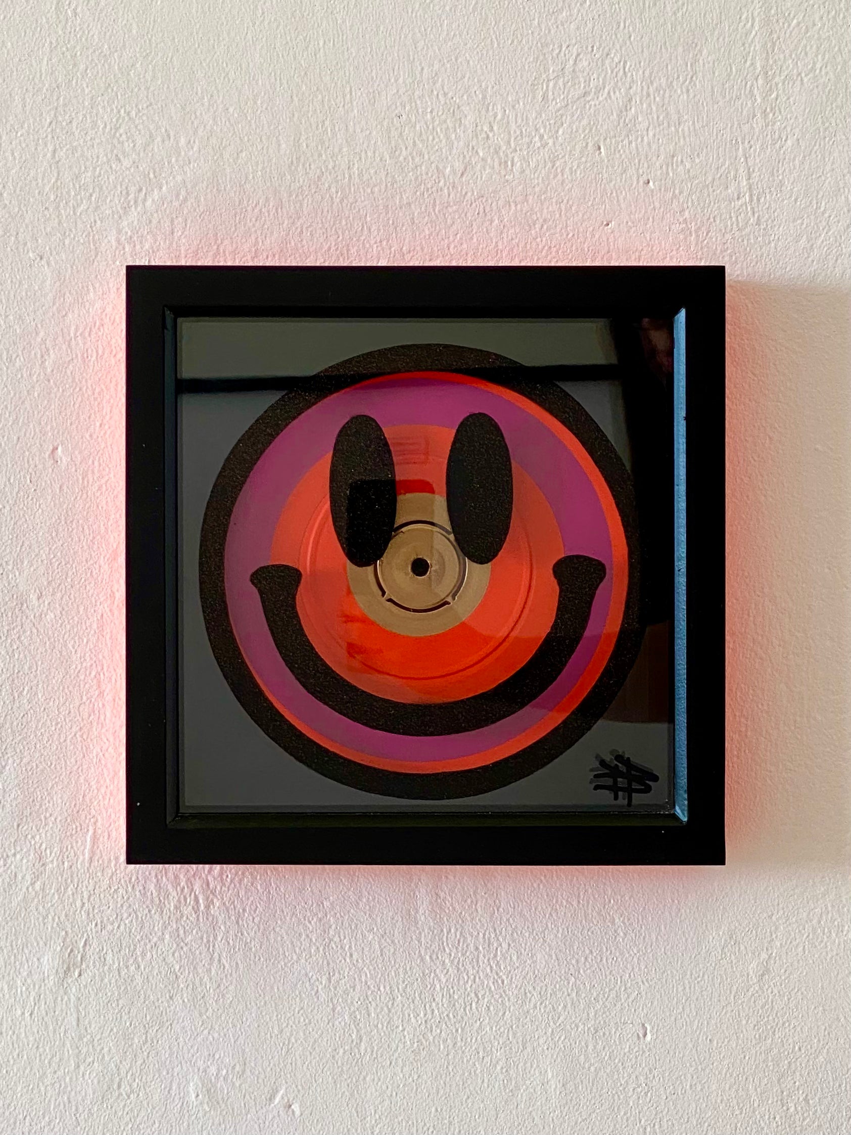 Medium: Hand sprayed on glass, 7'record and perspex